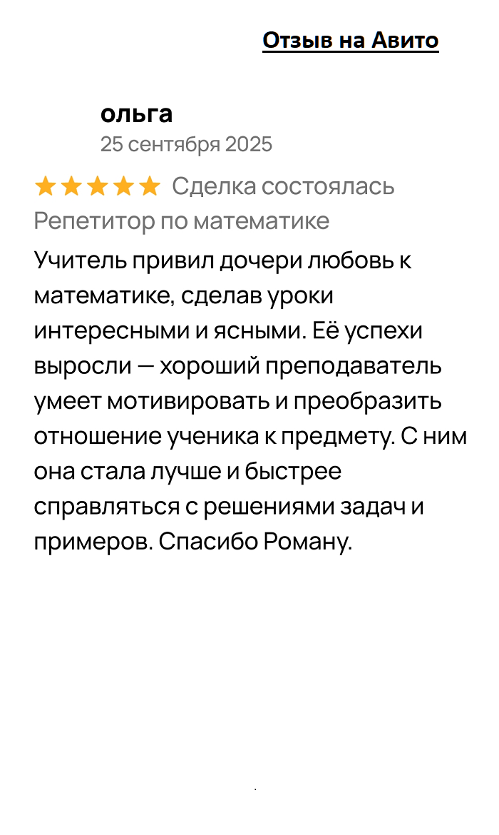 - Занимаюсь с учениками с 6 по 9 класс включительно. Именно с 6 класса у ученика могут начинаться проблемы с пониманием материала, решить которые наиболее эффективно может помочь лишь опытный репетитор по математике.
